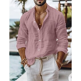 Per uomo Camicia camicia di lino Camicia estiva Abbigliamento mare Camicia con bottoni Tinta unica Esterno Da mare Nero Bianco Rosa Blu Manica lunga Collo ripiegabile Primavera estate Abbigliamento