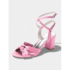 sandali da donna con tacco a blocco in raso fucsia, scarpe eleganti con cinturino alla caviglia e fiocco per damigelle d'onore per matrimoni all'aperto in giardino