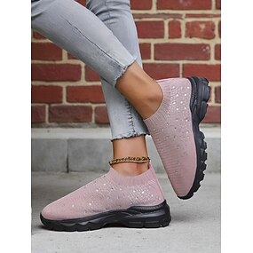 sneakers slip-on flyknit con strass rosa da donna – scarpe con zeppa traspiranti e leggere per camminare, fare fitness e indossare ogni giorno in modo casual