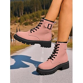 stivali da combattimento con lacci da donna con fibbia laterale – suola antiscivolo resistente, stile casual da esterno e da fattoria, perfetti per l'autunno e l'inverno