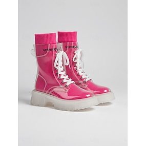 Stivali da pioggia trasparenti e impermeabili da donna con calzini – stivali da combattimento con plateau e lacci, suola antiscivolo, ideali per i giorni di pioggia, le attività all'aperto e i
