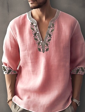 Per uomo Etnico Camicia Camicia di lino Manica Lunga Moda Streetwear Designer All'aperto Quotidiano Uscire Primavera & Estate Collo alla coreana Stampato Nero + Nero Giallo Verde chiaro Rosa Rosso
