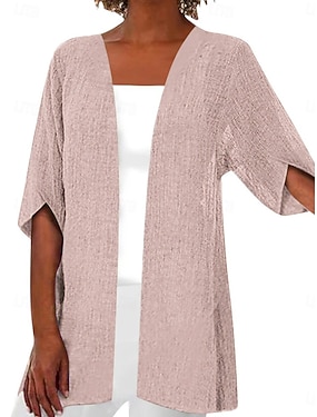 Per donna Giacca Casual Traspirante Confortevole Volant Casual Semplice Vacanza Streetwear Casuale Abbigliamento quotidiano Aperto davanti Regolare Senza colletto Vestibilità regolare Manica 3/4