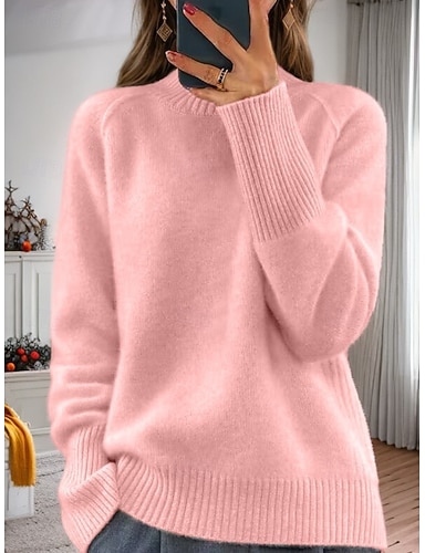 Per donna Felpa Maglione Streetwear Casual Colore Puro A Coste Girocollo Lavorato a maglia Manica Lunga Top Regolari Maglia All'aperto Quotidiano Weekend Rosa intenso Rosa Autunno Inverno
