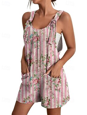 Per donna Normale Tuta Streetwear Floreale Senza Maniche Collo a U Tasca Stampato Streetwear Uscire Vestibilità regolare Rosa Estate