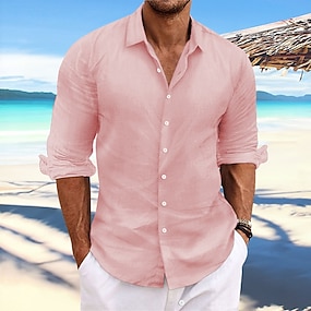 Per uomo Camicia camicia di lino Camicia estiva Abbigliamento mare Camicia con bottoni Tinta unica Esterno Da mare Nero Bianco Rosa Blu Manica lunga Collo ripiegabile Primavera estate Abbigliamento