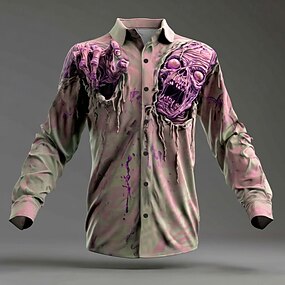 Camicia da uomo horror zombi a maniche lunghe stile punk gotico scuro button up outdoor vacanze estive e primaverili a collo aperto stampa 3D camicie rosa blu viola verdi