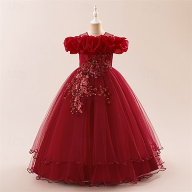 Abito da damigella d'onore bambina bambini Da ragazza Abito da principessa Prestazioni Matrimonio Feste Elegante Bellissimo Retato Tinta unica Senza maniche Girocollo Rosa chiaro Rosso bordeaux 4