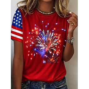 Giorno dell'Indipendenza Maglietta Patriottica da Donna Stampa Grafica Bandiera Stile Vintage Classico Manica Corta Collo Rotondo Regular Tops Giornaliero Weekend Stampa Nera Bianca Estate Primavera