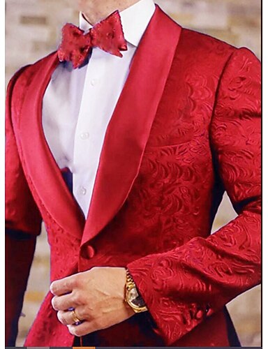 Uomo Abiti da festa Casuale Rosso Verde Autunno & Inverno Tuta Bavero sciallato Moda Quotidiano Tinta unita Vestibilità su misura 2 pezzi Monopetto a un bottone