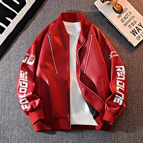 Per uomo Giacca in Ecopelle Giacca da Biker Giacca da Moto Vacanza Quotidiano Antivento Caldo Tasca Autunno Inverno Lettera Moda Classico Collo alla coreana Regolare Nero Bianco Rosso Giacca