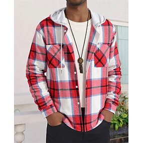 Per uomo Giacca Leggera Giacca Camicia Giacca Casual Vacanza Quotidiano Traspirante Tasca Primavera Autunno Plaid Moda Classico Con Cappuccio Regolare Vino Rosso Blu Verde Giacca