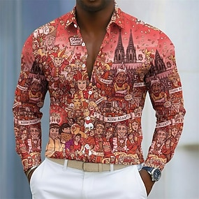 Carnevale Per uomo Colorato Camicia Camicia con Bottoni Manica Lunga Casual Carnevale Abbigliamento quotidiano Martedì grasso Autunno & Inverno Collo ripiegato Stampato Bottonato Rosso Verde
