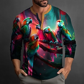 Per uomo Grafico Pappagallo Maglia Henley Manica Lunga Stampa 3D Moda Quotidiano Casual Casuale Ferie Uscire Primavera & Autunno Blu Rosso Verde scuro Verde Blu scuro Henley Maglietta Henley