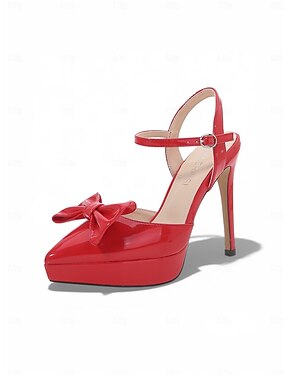 Scarpe con tacco a spillo in vernice rossa da donna - décolleté con fiocco e punta aguzza per feste di Natale, cene di festa o eleganti abiti da sera