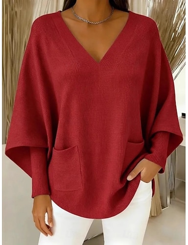 Per donna Felpa Maglione Elegante Moda Casual Colore Puro A Coste Scollo a V Lavorato a maglia Manica Lunga Top Regolari Maglia Quotidiano All'aperto Weekend Nero Bianco Autunno Inverno