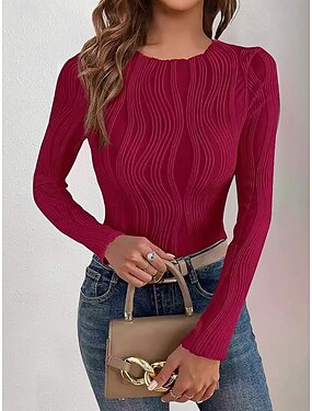 Per donna Top a maglia a coste Maglietta Tinta unica Elegante Essenziale Casual Manica Lunga Scollo a V Top Regolari Quotidiano Blu Nero Bianco Rosa Rosso Primavera Autunno Inverno