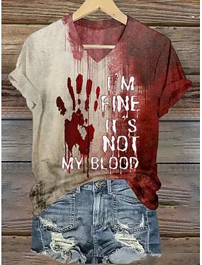 T shirt Donna Graphic Monster Vintage Stiloso Classico Manica Corta V Collo Top Regolari Quotidiani Stampa Bordeaux Nera Bianca Rossa Estate Primavera