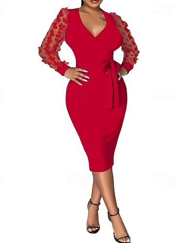 Per donna Abito Midi Abito in Raso Vestito da Festa Abito da Cocktail Moda Moderno Festa serale Feste Compleanno Vestibilità regolare Semplice Manica Lunga Scollo a V Nero Rosso Blu Reale Viola