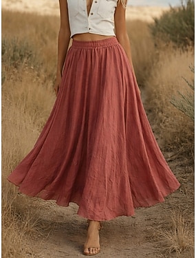 gonna da vacanza da donna in finto cotone e lino stile bohémien vintage casual maxi a vita alta tinta unita elastico in vita fluida elasticizzata per tutti i giorni spiaggia blu rosa chiaro rosa scuro nero estate cotone lino