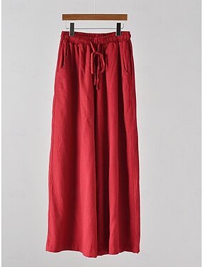 Per donna Finto cotone e lino Pantaloni Pantaloni Estivi Pantaloni Larghi Vacanza Essenziale Casual Lunghezza intera Vita Alta Tinta unica Tasca Gamba larga Fascia Elastica Comodità Morbido