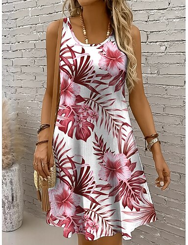 Per donna Mini Abito Vestito Estivo Abito a trapezio Abito Estivo Vacanza Casual Matrimonio Casa Feste Vestibilità regolare Floreale Grafico Foglia Senza Maniche Collo a U Giallo Rosso Blu Viola