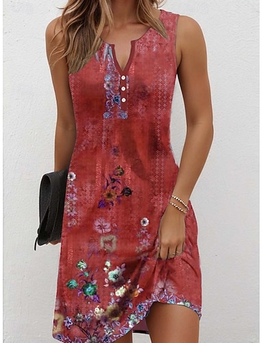 Per donna Mini Abito Abito Estivo Casual Quotidiano Vestibilità regolare Floreale Grafico Senza Maniche Scollo a V Rosso Blu marino Verde Grigio Estate