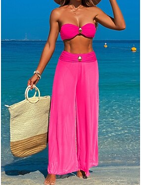 Per donna Costumi da bagno Tre Pezzi Pantalone Costume da bagno Arricciato Senza schiena Vacanza Abbigliamento da Spiaggia Semplice Senza Spalline Senza Maniche Costumi da bagno