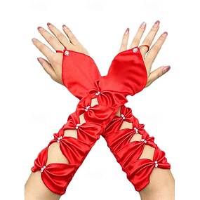 Guanti in satin di poliestere per donne di Mardi Gras in più colori design elegante con dettagli di perline perfetti per Carnevale e balli in maschera