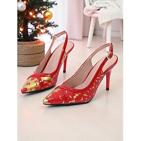 scarpe con tacco slingback in vernice rossa da donna con punta dorata, punta affilata ed elegante, design chic, perfette per feste di Natale, eventi serali e occasioni formali