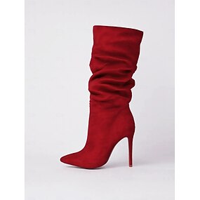 stivali stiletto scamosciati da donna, stivali a punta con tacco alto e a metà polpaccio in vari colori per outfit autunnali e invernali alla moda