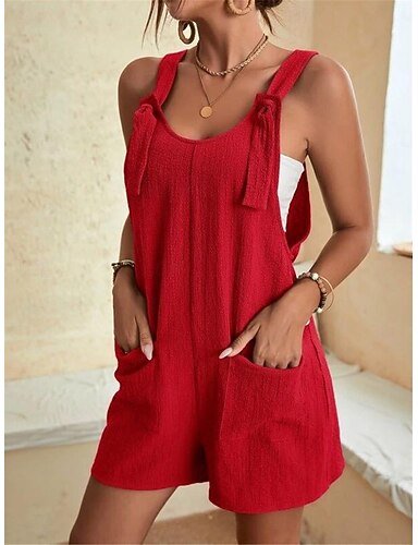 Per donna Normale Tuta Streetwear Tinta unica Senza maniche A V Bottoni Tasche Strada Giornaliero Standard Nero Rosa Vino Estate