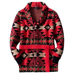Per uomo Maglione Jacquard Maglioni di Natale Maglione per le feste Cardigan Maglione Corto A Coste Uncinetto Maglia Tunica Jacquard Lavorato a maglia Vintage Collo a scialle Moda Classico Vacanza