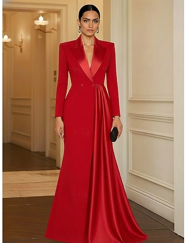 Per donna Abito blazer Abito da smoking Sirena Tromba Affari Ospite di nozze Raso Crepe Elasticizzato Elegante Formale Manica Lunga Lunghezza al pavimento Bavero sciallato Doppiopetto