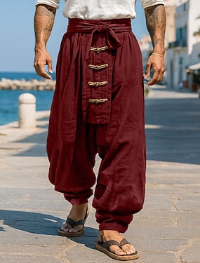 Per uomo Pantaloni di Lino Pantaloni Pantaloni Estivi Pantaloni Larghi Coulisse Elastico in vita Bottoni Semplice Comodità Traspirante Lunghezza intera All'aperto Yoga Casuale Designer Retrò Vintage