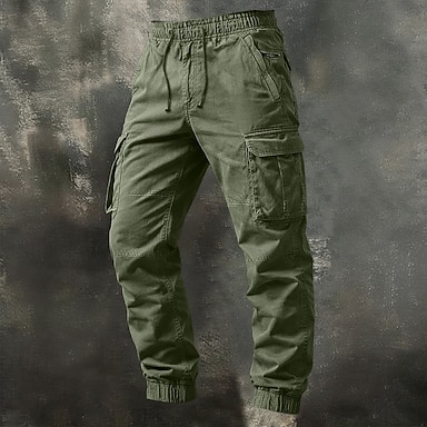 Per uomo Pantaloni Cargo Pantaloni Coulisse Elastico in vita Multi-tasche Semplice Indossabile Lunghezza intera Quotidiano All'aperto Campeggio & Escursionismo Vacanza Moda Nero Verde militare