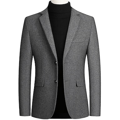 Per uomo Cappotto di lana Blazer Matrimonio Ufficio Ufficio / Carriera Moda Stile Classico Autunno Lana Tinta unica Calore Termico Caldo Monopetto Giacca Nero Vino Blu marino Grigio