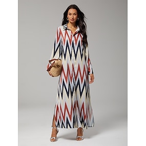 abito lungo da donna in raso astratto geometrico color block scollo a V manica dolman cintura elegante vacanza casual primavera estate autunno