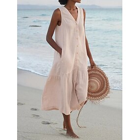 Per donna Abito Midi Finto cotone e lino Abito a Tubino Abito Estivo Casual Quotidiano Vestibilità comoda Semplice Senza Maniche Scollo a V Blu Bianco Verde chiaro Rosa Estate
