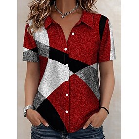 Camicia da donna manica corta festa dell'indipendenza americana grafica con bandiera vintage elegante casual colletto normale top quotidiani bianco rosso estate primavera