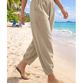 Per donna Pantaloni Estivi 100% cotone Pantaloni Larghi Pantaloni harem Comfort Lunghezza alla caviglia Naturale Tinta unica Tasca Elastico in vita Casual Nero Bianco Verde militare Blu marino scuro
