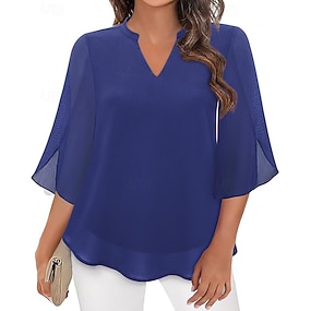 Per donna Blusa Top in chiffon Patchwork Semplice Elegante Casual Mezza Manica Scollo a V Top Regolari Quotidiano Ferie Uscire Nero Rosa Vino Rosso Blu Reale Estate Primavera Autunno