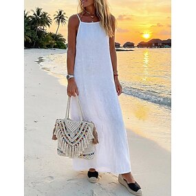 Per donna Abito maxi Misto cotone Abito a Tubino Vestito Estivo Vestito Casual Essenziale Casual Quotidiano Vacanza Vestibilità regolare Semplice Senza Maniche Spallina Nero Bianco Verde militare