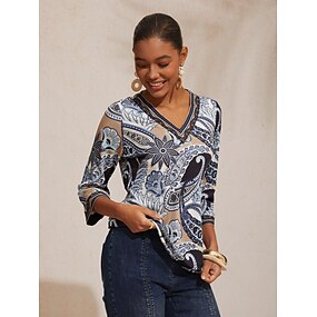 Per donna Femminile Camicia casual Geometrico Floreale Casuale Corte Multi Color Stampato Fascia girovita incrociata Manica Corta Maniche Corte Elegante Bohemien Vacanza A barca Estate Primavera