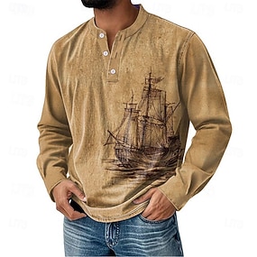 Per uomo Grafico Vintage Maglia Henley Manica Lunga Vintage Moda Carino Casuale Ferie Uscire Primavera & Autunno Blu Rosa Verde Cachi Henley Maglietta Henley