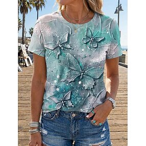 Per donna Maglietta Stampato Farfalla Moda Moderno Manica Corta Girocollo Top Regolari Quotidiano Blu Giallo Rosa Azzurro cielo Estate