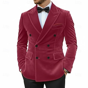 giacca blazer in velluto da uomo con chiusura a colletto, casual, tinta unita, rosso, blu, viola, vestibilità su misura, doppiopetto, sei bottoni