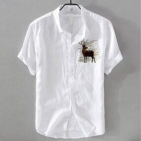 Per uomo Camicia di lino Camicia casual Camicia in cotone e lino Camicia con Bottoni Con Motivo Animale Vacanza Abbigliamento quotidiano Bianco Blu marino scuro Azzurro cielo Cachi Manica Corta Bavero