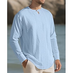 Per uomo Camicia camicia di lino Camicia con colletto a fascia Camicia estiva Abbigliamento mare Camicia con bottoni Liscio Informale Giornaliero Nero Bianco Blu Manica lunga A fascia Primavera estate