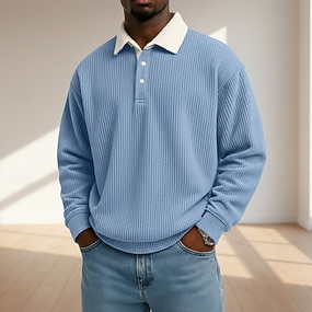 Per uomo Magliette Polo a Nido d'Ape Testurizzato Streetwear Casuale Bavero Manica Lunga Essenziale Moderno Semplice Testurizzato Patchwork Bottoni Primavera Autunno Tutte le stagioni Vestibilit